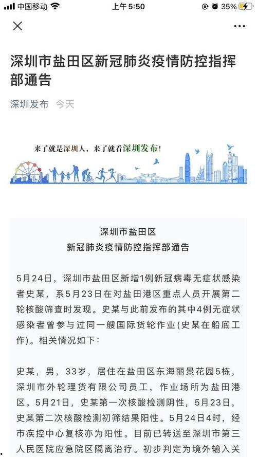 亲爱的读者们,你是否也和我一样,对深圳这座繁华都市的疫情动态充满好奇?今天,就让我带你一起揭开深圳疫情的神秘面纱,看看这座城市的防疫战是如何进行的。